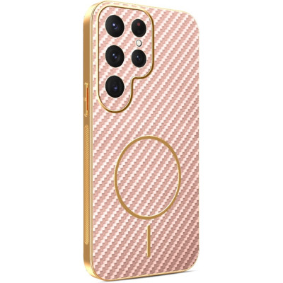Phonesta Luxury Carbon Fiber Zadný kryt puzdro s MagSafe pre Samsung Galaxy S25 Ultra - Ružová